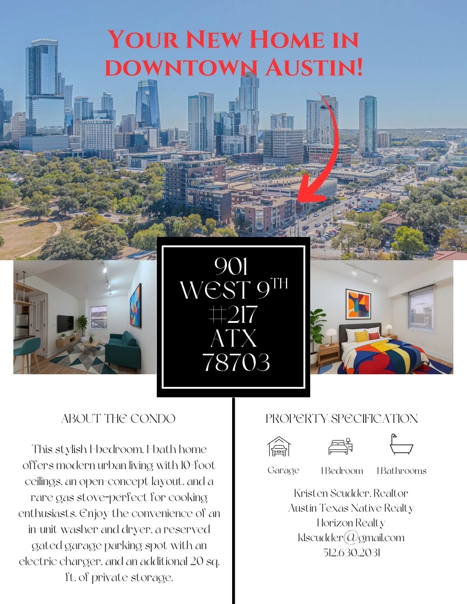 Stunning downtown Austin condo! This stylish 1-bedroom, 1-bath home offers modern urban living with 10-foot ceilings, an open-concept layout, and a rare gas stove—perfect for cooking enthusiasts. Enjoy the convenience of an in-unit washer and dryer, a reserved gated garage parking spot with an electric charger, and an additional 20 sq. ft. of private storage. The community amenities are second to none—conference room, secure front desk, sparkling pool, spa, and gym—all just steps (about 20 feet!) from your door. Plus, a designated guest parking spot makes hosting easy. HOA covers water, wastewater, gas, and trash for added value and convenience. Experience the best of Austin living—walkable, vibrant, and ready to impress. Get excited!